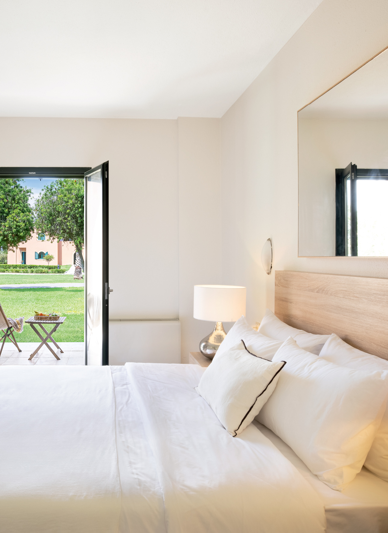 Изысканные летние домики, вдохновленные природой Корфу, расположены в красочном саду, в нескольких шагах от протяжённого природного пляжа. Уединённые домики идеально подходят для семей, предлагая доступ к собственному бассейну и эксклюзивную возможность посещения Club ресторана на пляже. Club – пляжный ресторан, работающий в течение всего дня, предлагает гостям простые и вкусные блюда днем и барбекю на огне вечером.