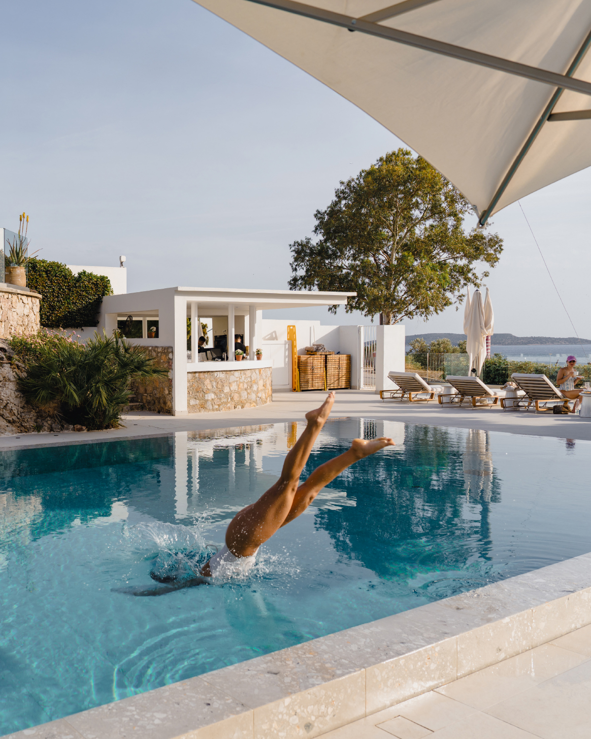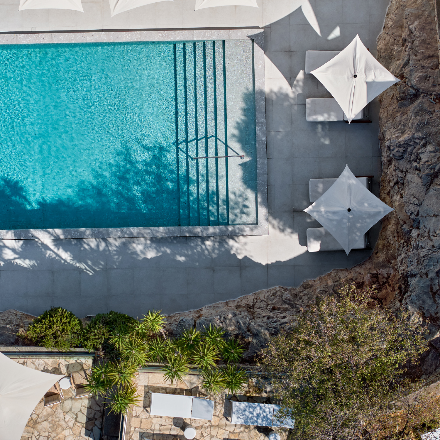 The sun-drenched Roc Pool is an intimate, shimmering oasis within an oasis. The quintessential setting to unwind in laid-back glamour with private terraces for sunbathing, all-day service and idyllic sundowners. In the shade of a century-old pine tree, get mesmerized by the sea views and the breeze. This is the ROC pure, exclusive luxury.